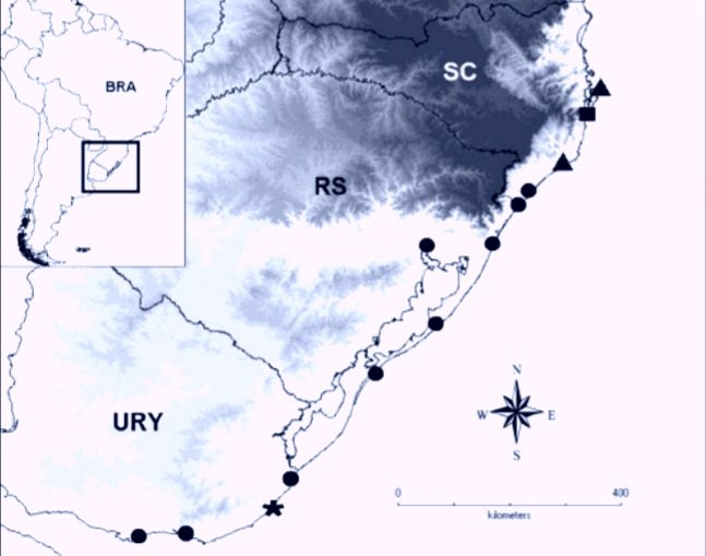 Especie endémica del sur de Brasil y del sudeste de Uruguay, pequeño anfibio, endemismo de las dunas del litoral del océano Atlántico del distrito fitogeográfico de la restinga, llamado en el Uruguay «monte psamófilo».