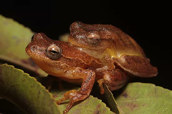 O Ranita Amarilla, anfibio arborícola que puede medir 2,5 cmts. de largo, sin incluir las extremidades.