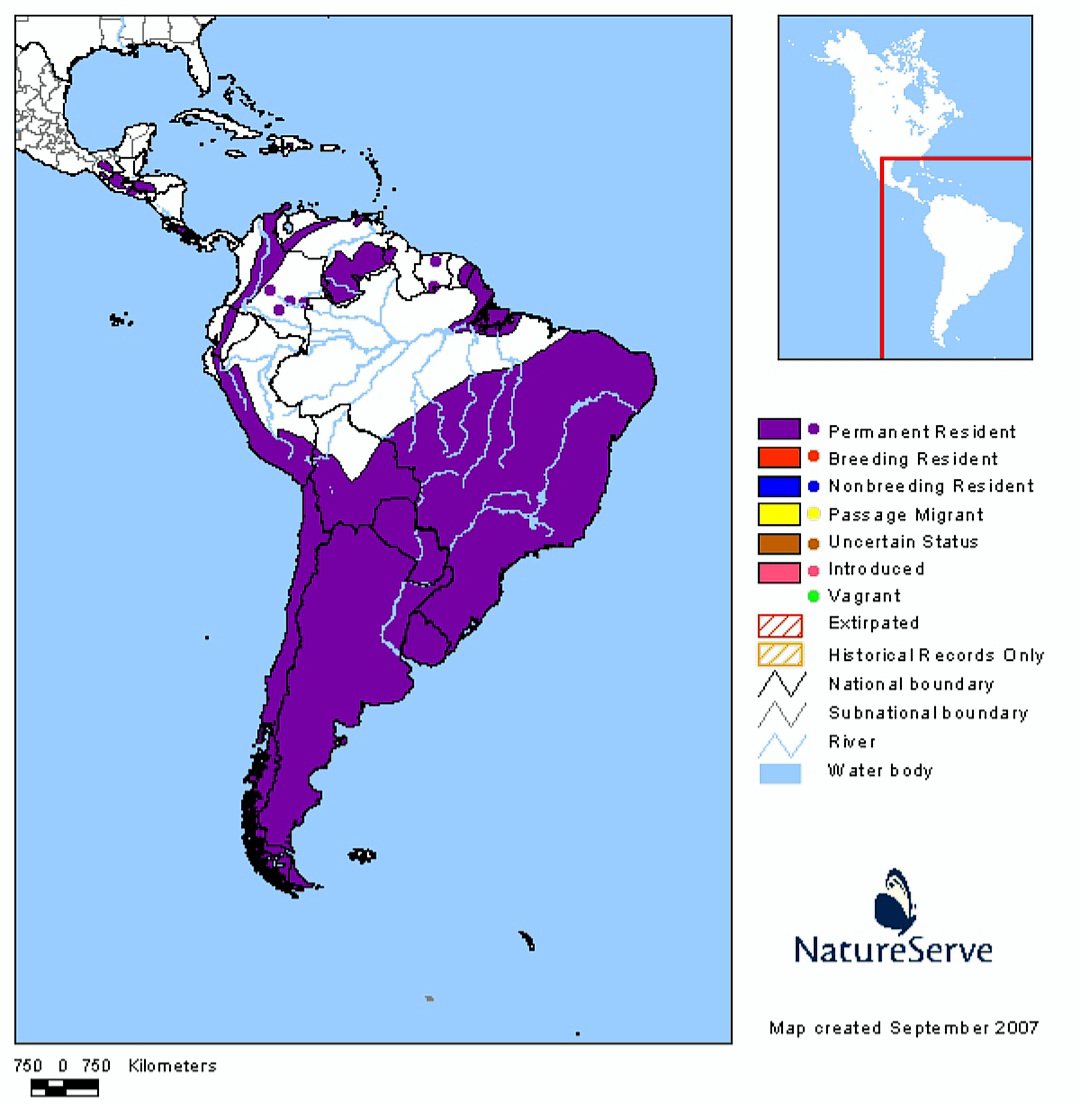 Especie netamente latinoamericana, presente en todo el país, sobre todo en pueblos y ciudades.