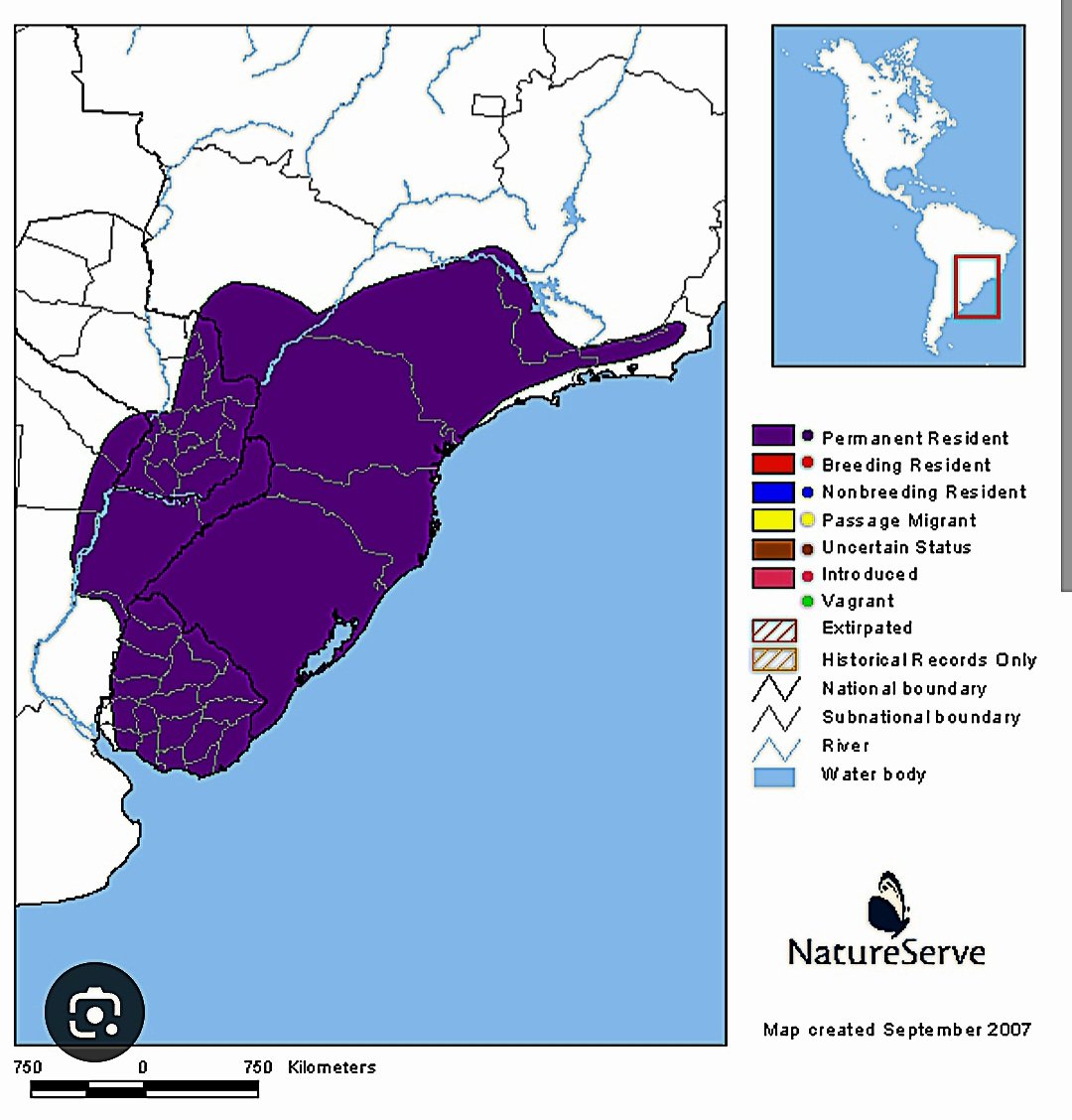 Especie MERCOSUR, habita en el estrato bajo de montes, selvas en galería y matorrales húmedos de casi todo el país.