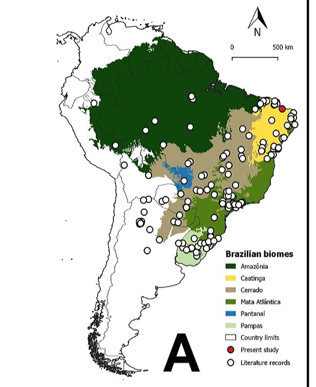 En Uruguay habita en 7 departamentos del Norte y Noreste del país.