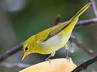 Se alimenta de frutos e insectos, sobre todo larvas.