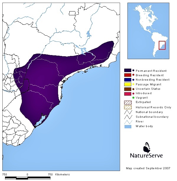 Diminuta y bella ave insectívora, otra especie exclusiva de Cerro Largo para Uruguay, propia de la Mata Atlántica.