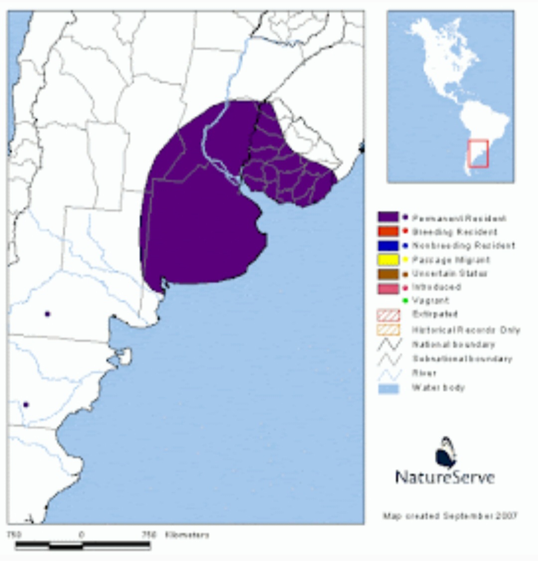 Ave de pastizales, se halla en problemas por la agricultura que implica reducción de su hábitat, es poco común fuera de la Pampa Húmeda.