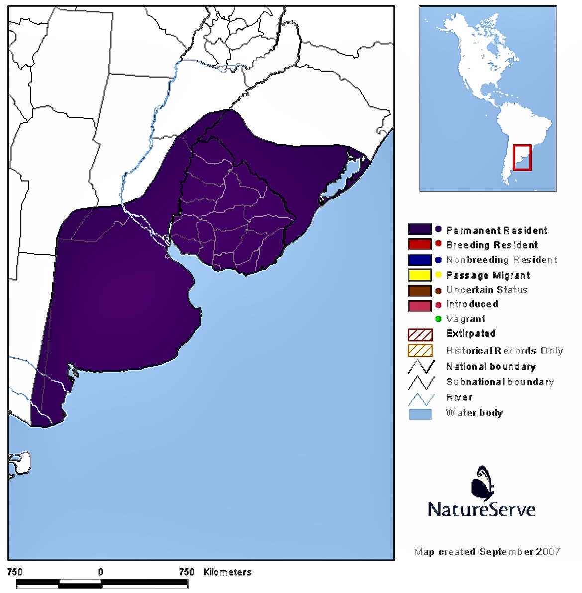 Especie monotipica que se halla en todo el país, aunque es escaso en el Norte.